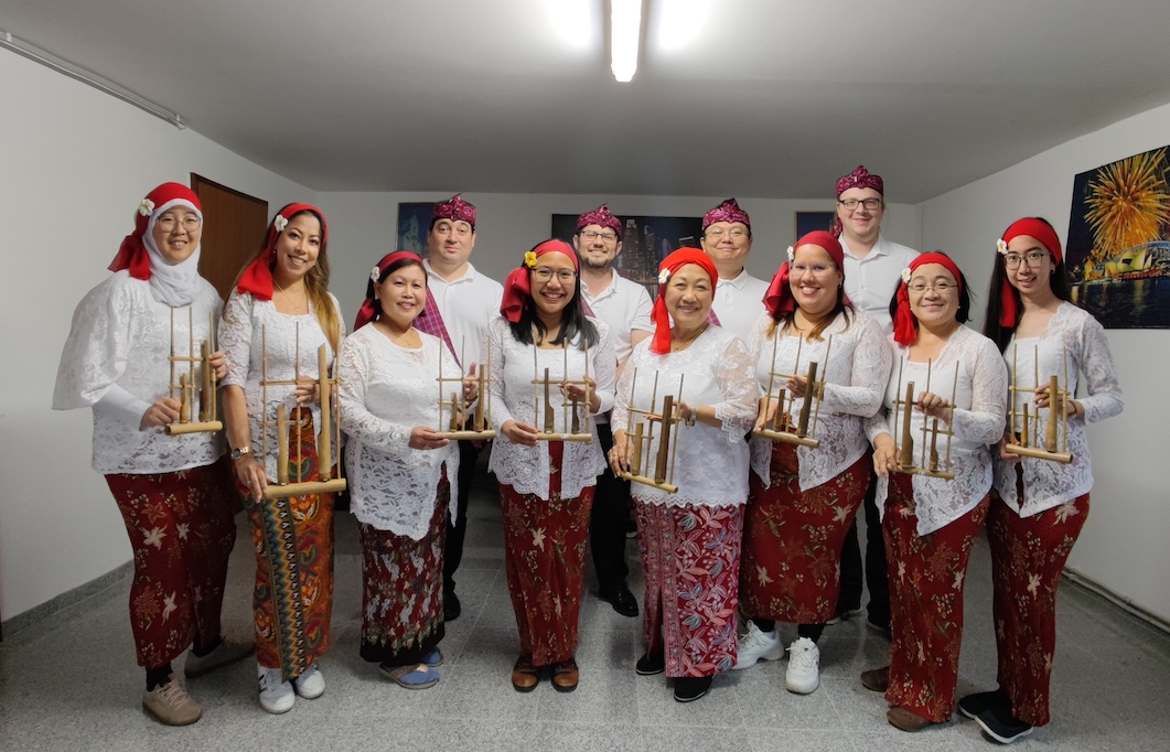 Das Angklung ist ein traditionelles indonesisches Schlaginstrument aus Bambus. Unsere Gruppe spielt Melodien aus verschiedenen Regionen Indonesiens.